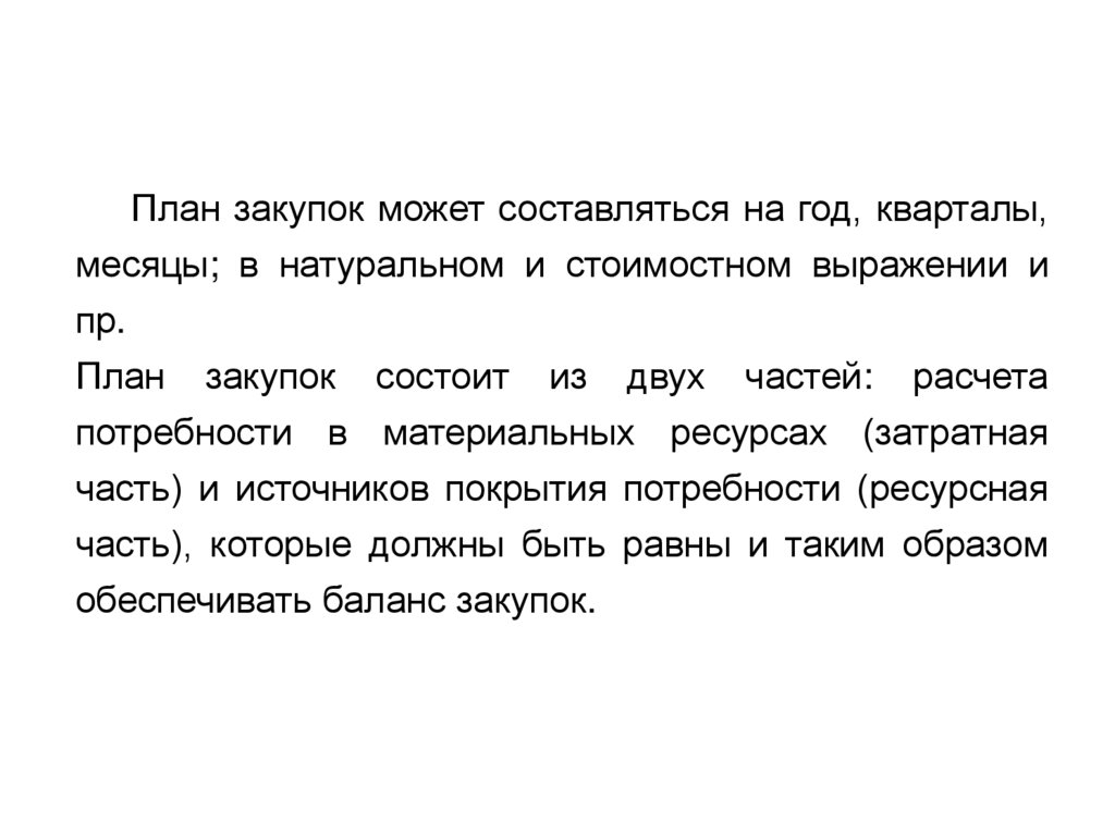 План закупок может составляться на год, кварталы,месяцы; в натуральном и стоимостном выражении и