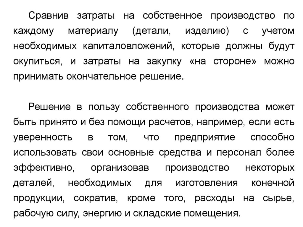 внутренних резервов (сокращение отходов, снижение