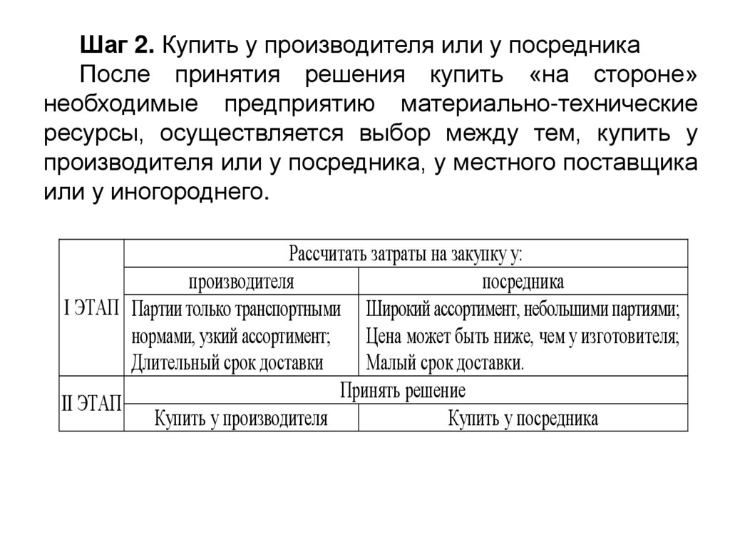 Процесс планирования закупок включает следующиеэтапы: