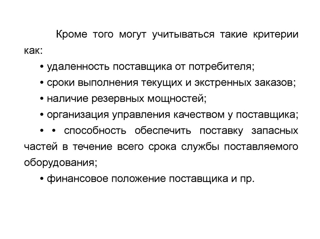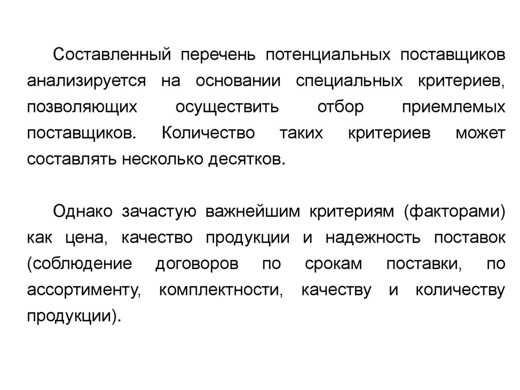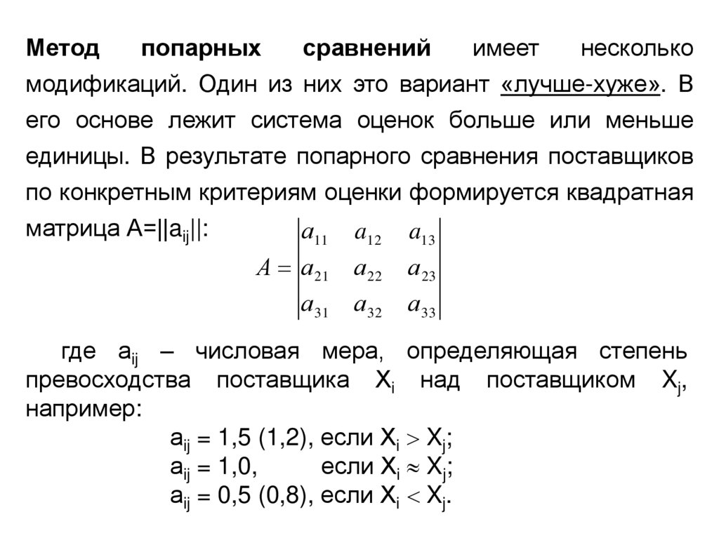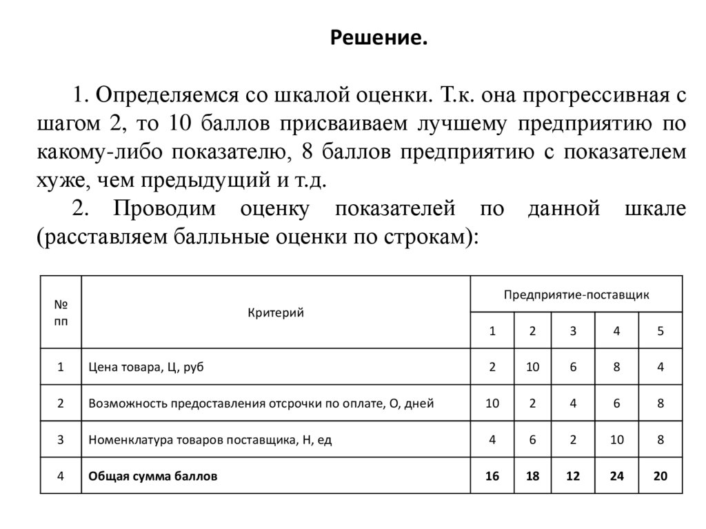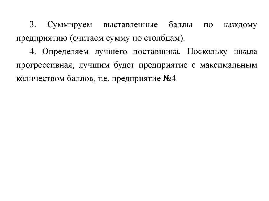 Это означает, что если один поставщик лучше другогопо оцениваемому критерию (фактору), то он получает