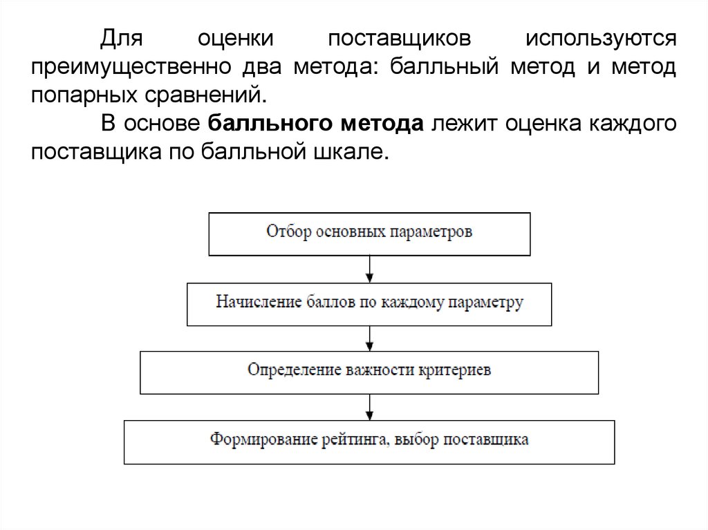поставщика по балльной шкале.