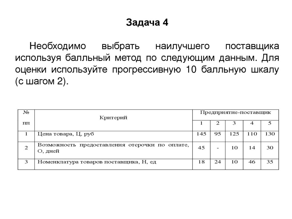 4. Определяем лучшего поставщика. Поскольку шкала