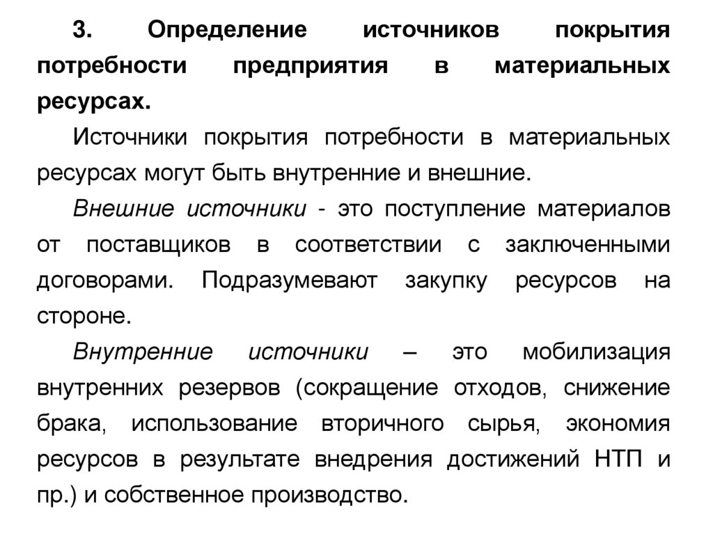 Источники покрытия потребности в материальных
