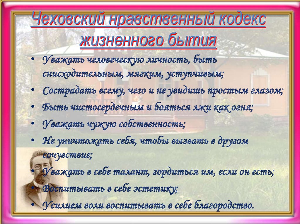 Чеховский нравственный кодексжизненного бытия