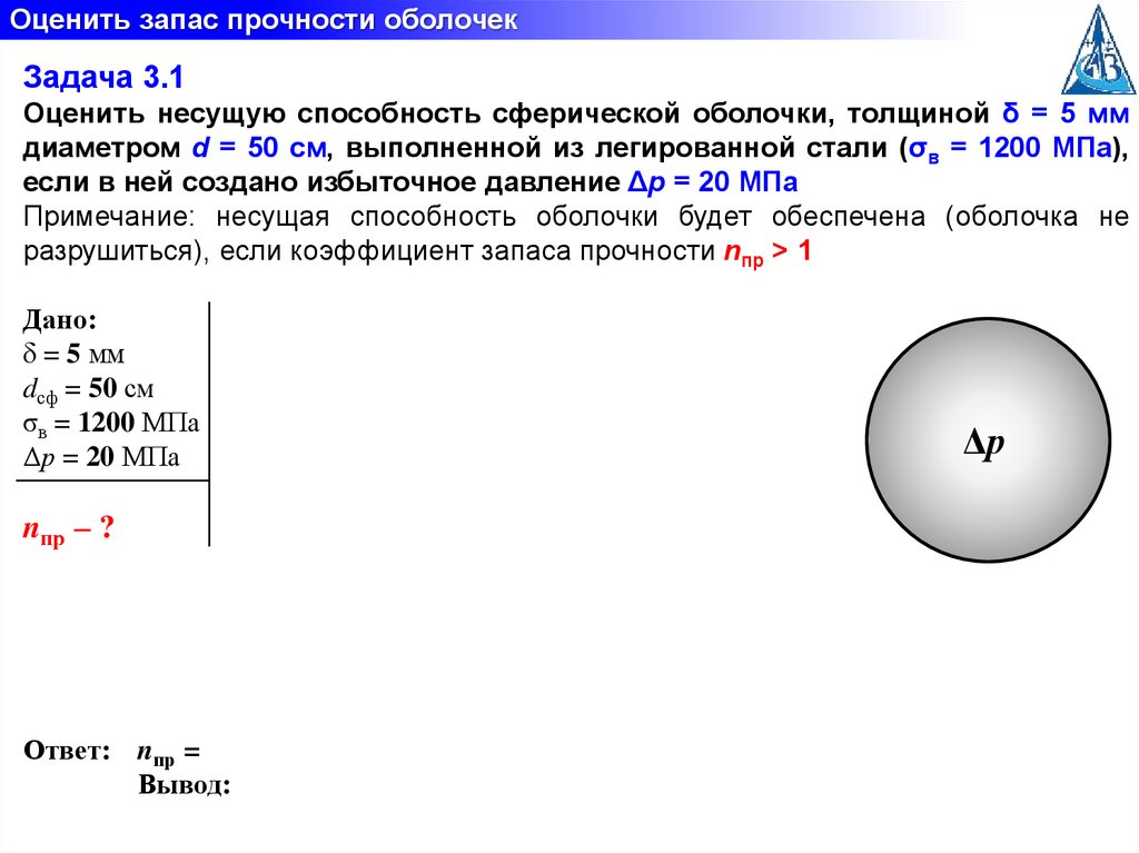 Оценить запас прочности оболочекЗадача 3.1