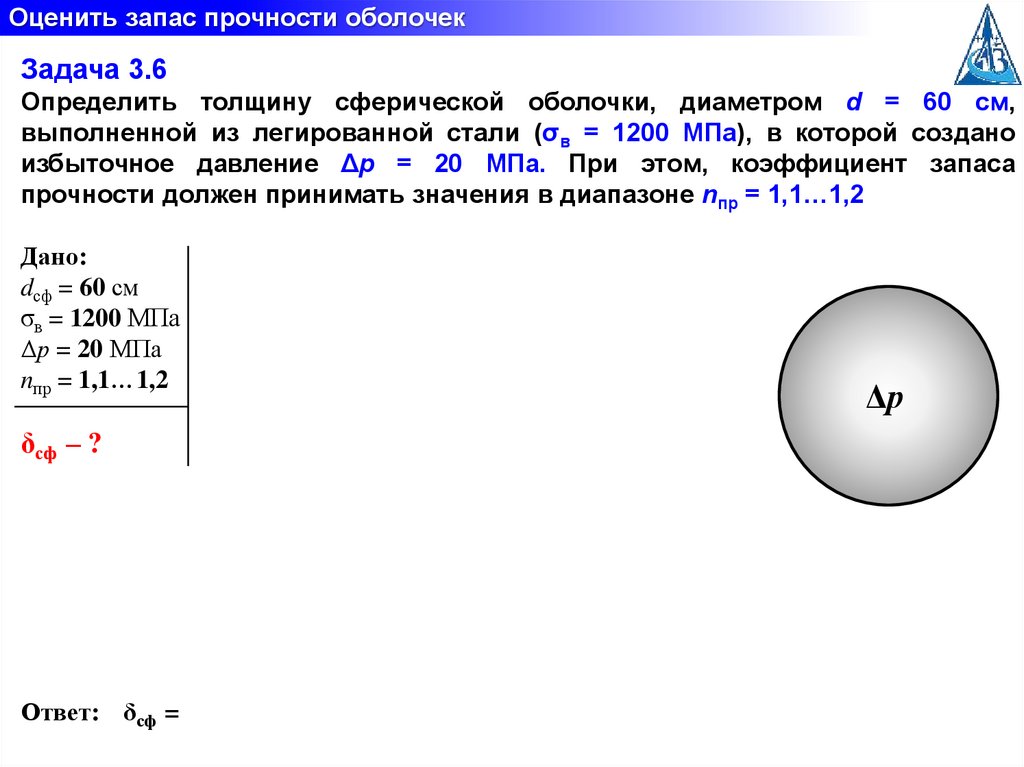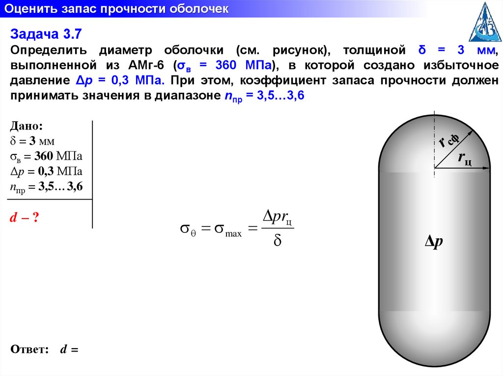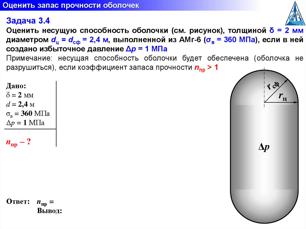 Оценить запас прочности оболочекЗадача 3.6