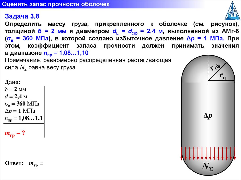 Оценить запас прочности оболочекЗадача 3.8