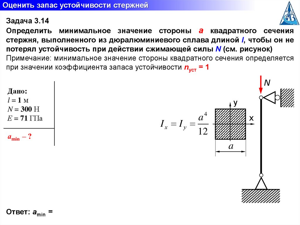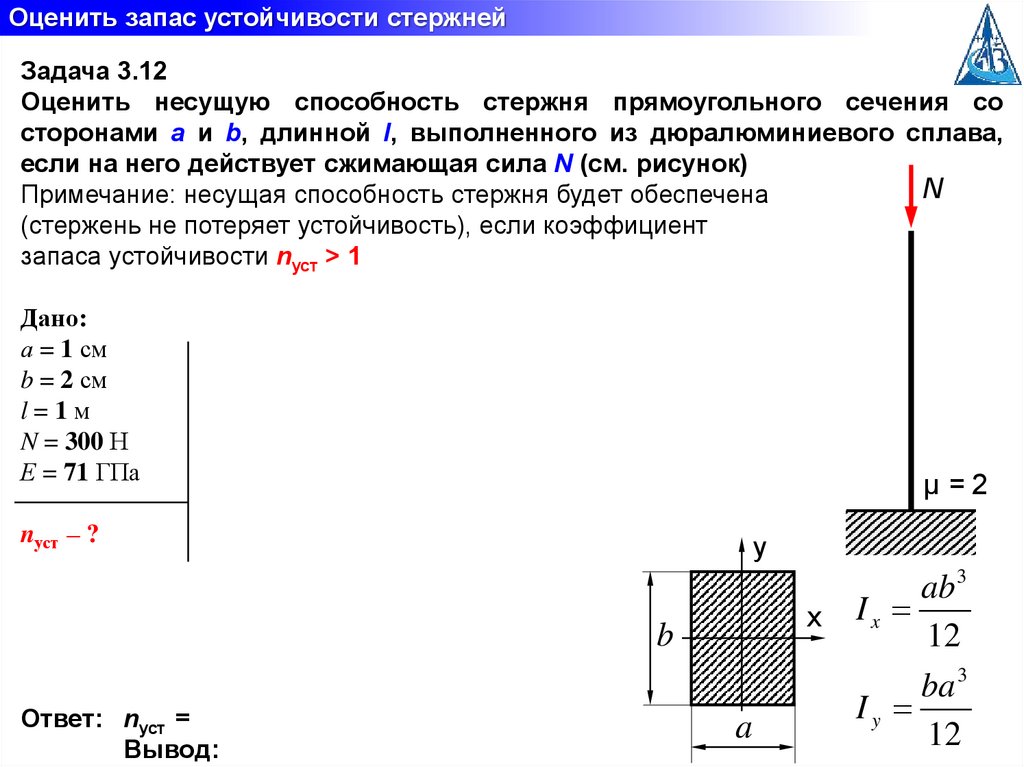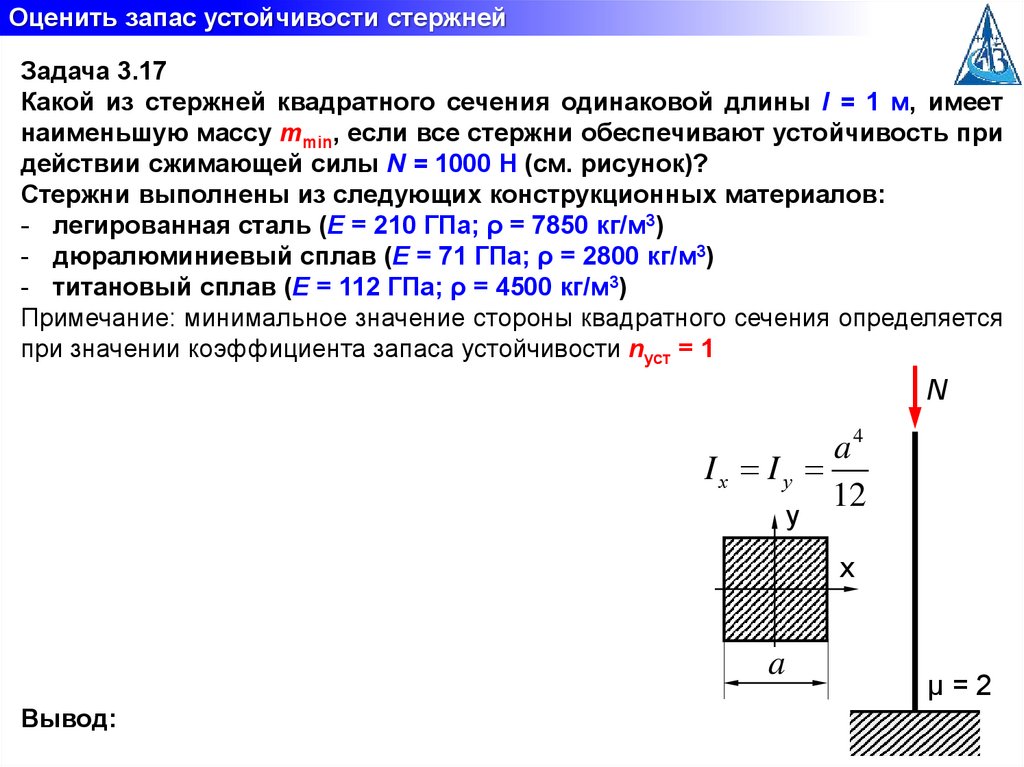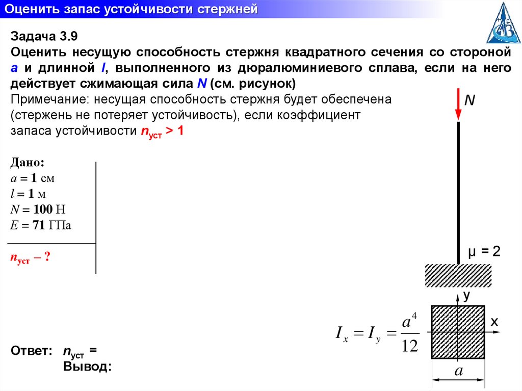 (Е = 210 ГПа) обеспечит его устойчивость, если на стержень действует