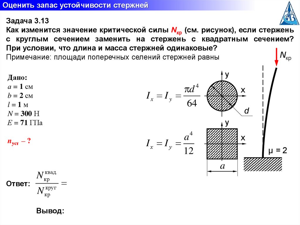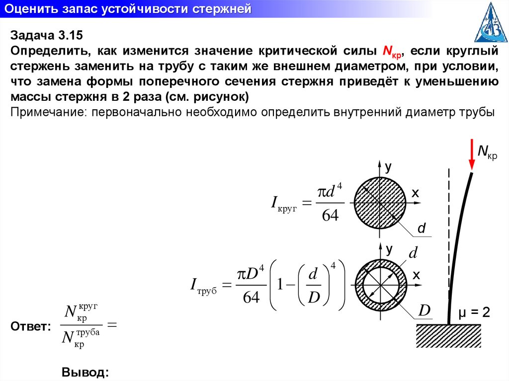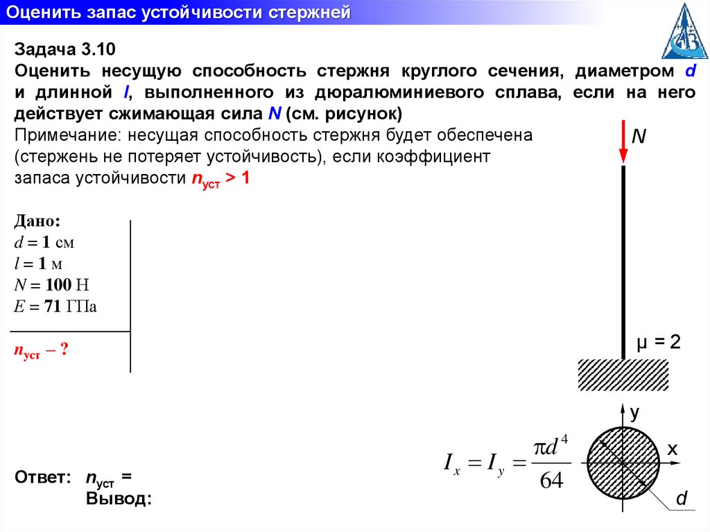 Оценить несущую способность стержня круглого сечения, диаметром d