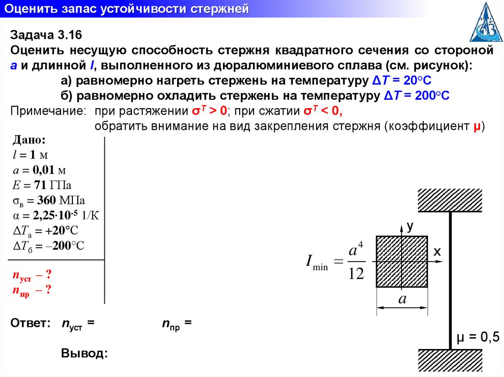стержня, выполненного из дюралюминиевого сплава длиной l, чтобы он не