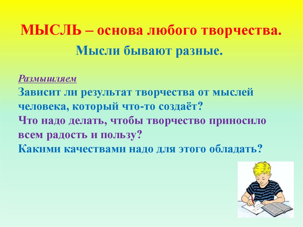 МЫСЛЬ – основа любого творчества.Мысли бывают разные.