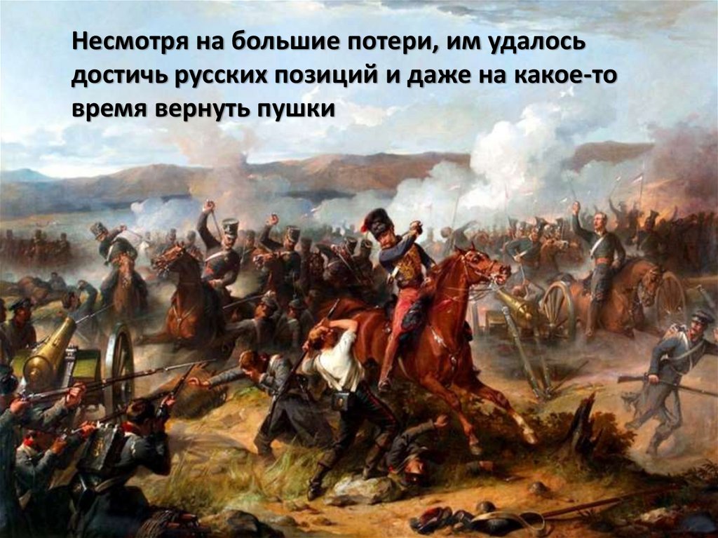 Несмотря на большие потери, им удалосьдостичь русских позиций и даже на какое-то