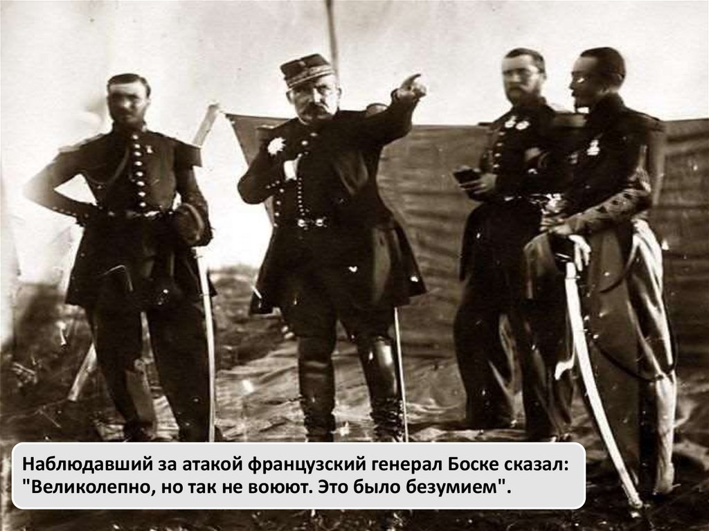 Наблюдавший за атакой французский генерал Боске сказал:"Великолепно, но так не воюют. Это было безумием".