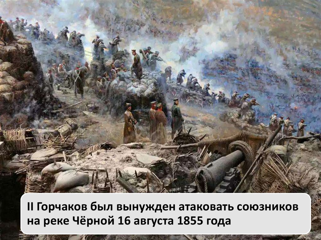 II Горчаков был вынужден атаковать союзниковна реке Чёрной 16 августа 1855 года