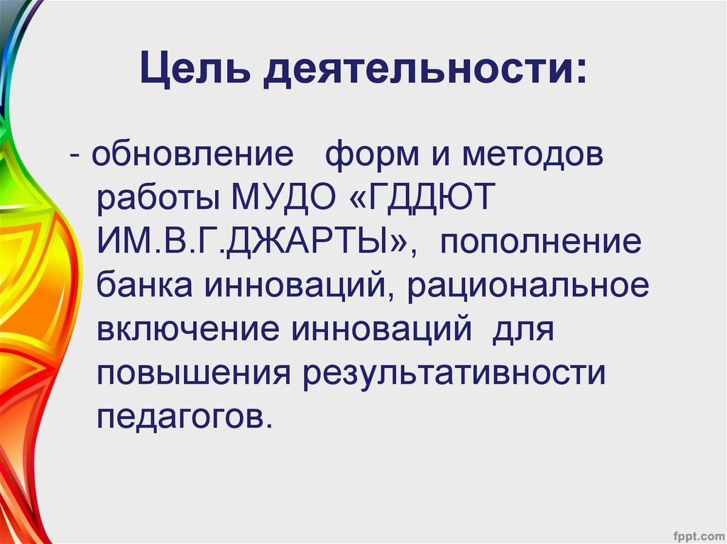 Цель деятельности:- обновление форм и методов