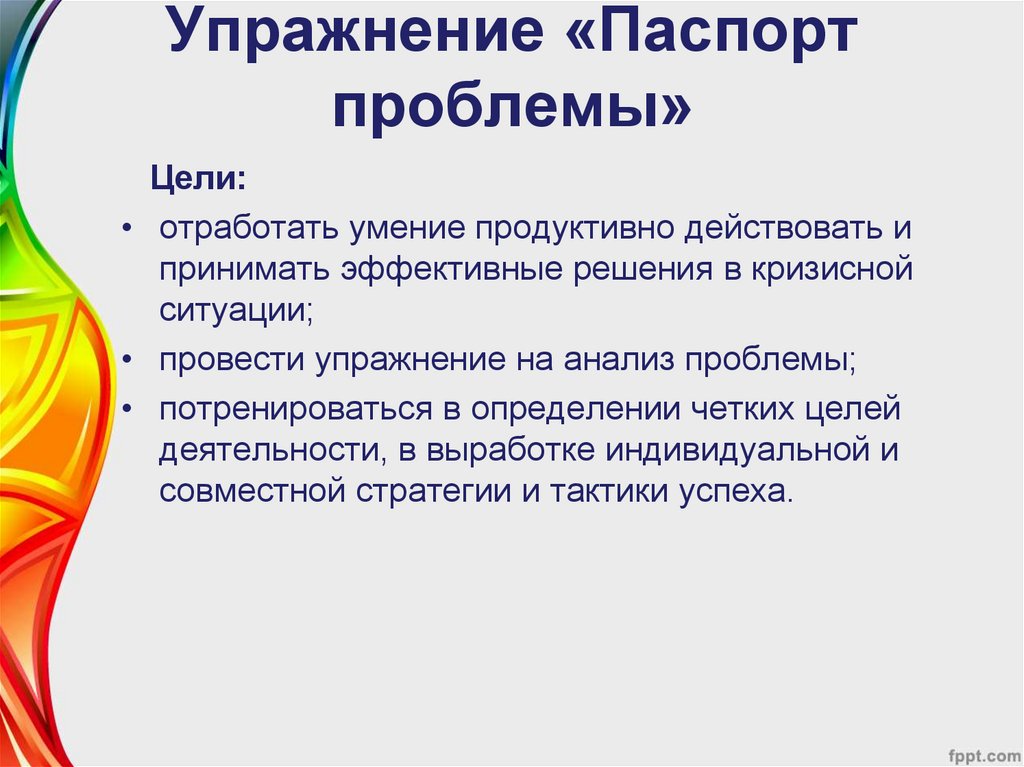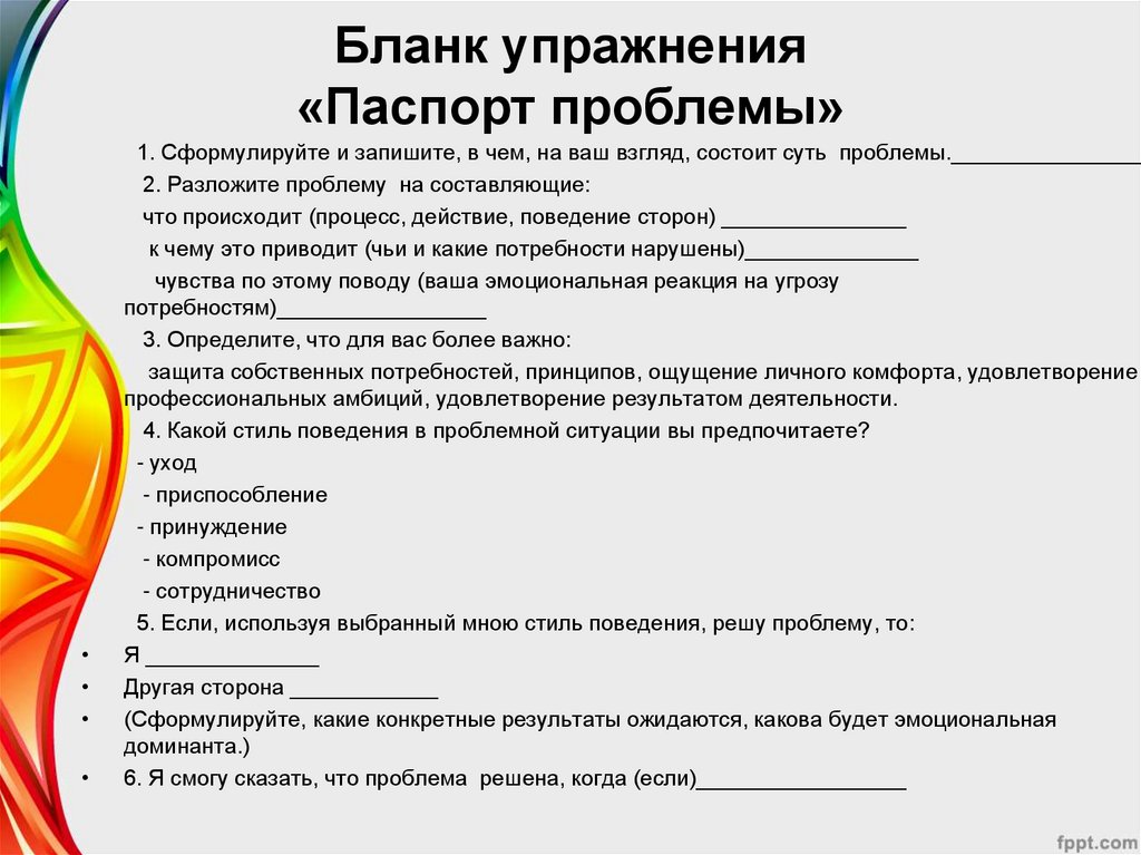 3. Упражнение «Паспорт проблемы» отработка