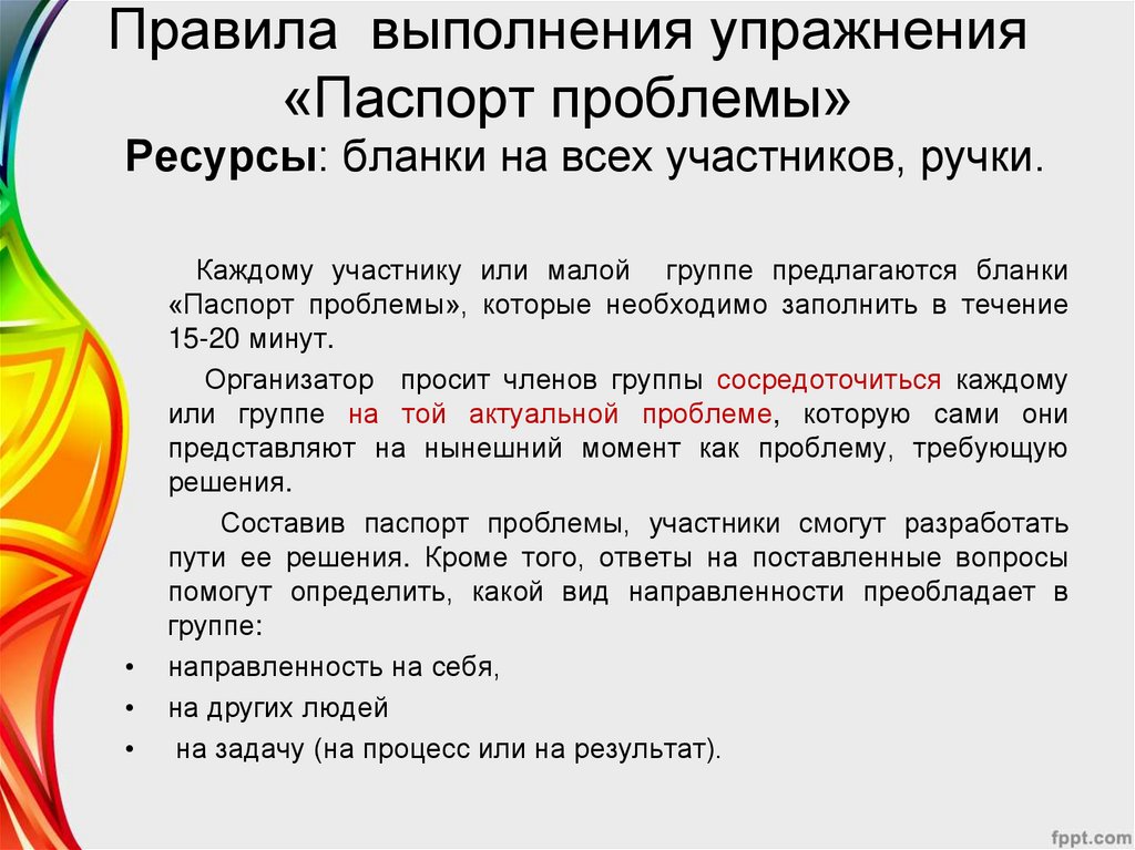 Правила выполнения упражнения«Паспорт проблемы»