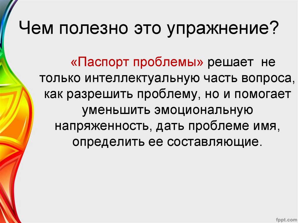 Чем полезно это упражнение?«Паспорт проблемы» решает не