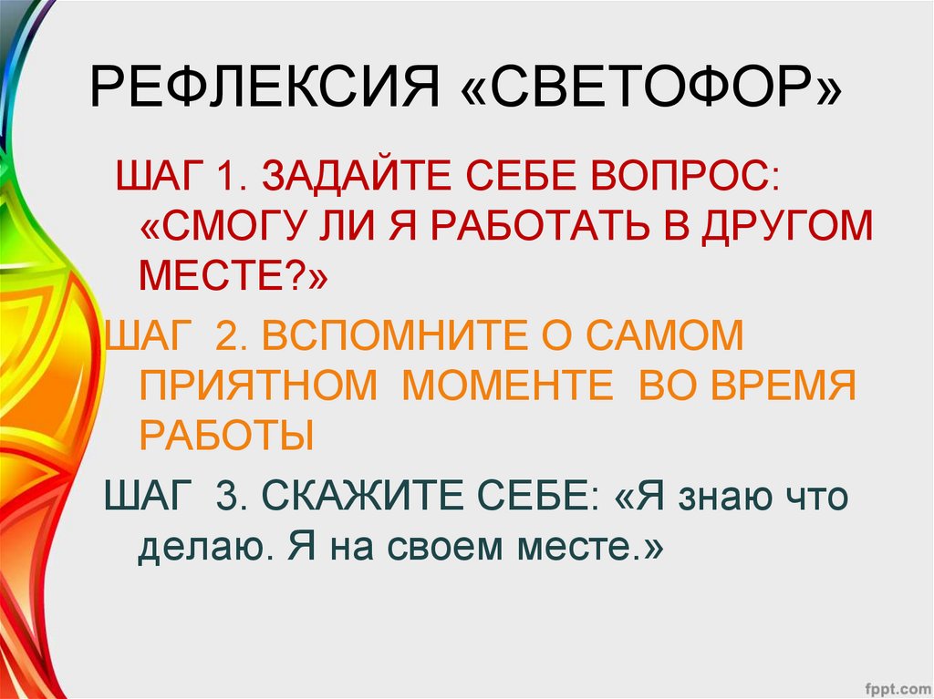 РЕФЛЕКСИЯ «СВЕТОФОР»ШАГ 1. ЗАДАЙТЕ СЕБЕ ВОПРОС:
