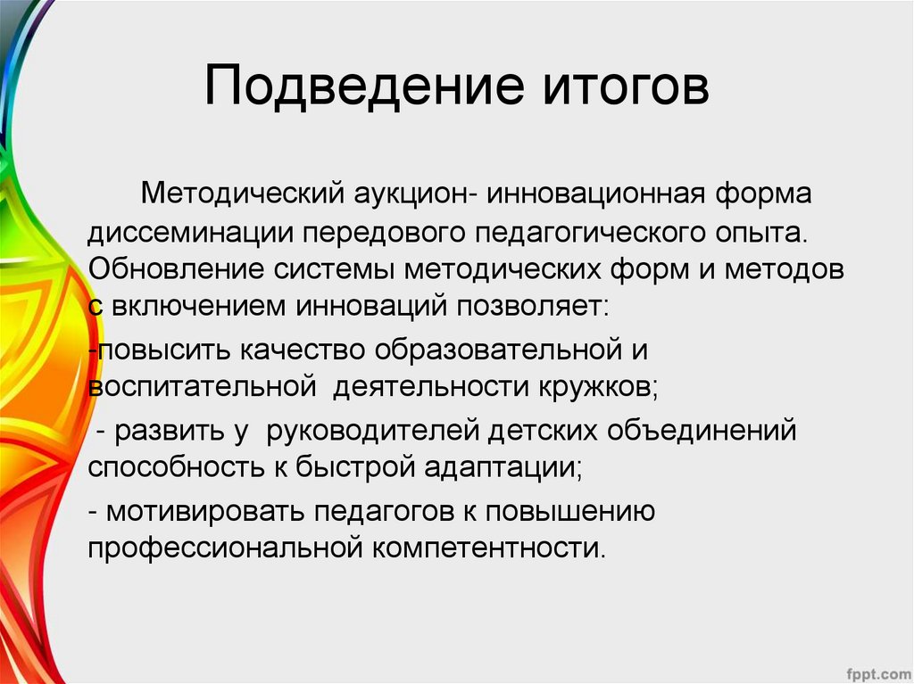 Подведение итоговМетодический аукцион- инновационная форма