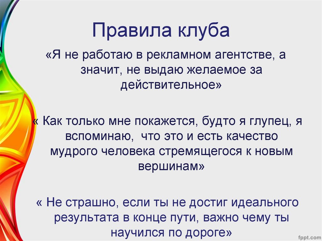 Правила клуба«Я не работаю в рекламном агентстве, а