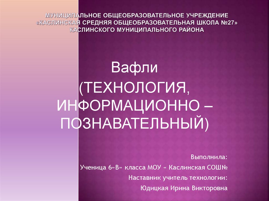 Вафли (технология, информационно – познавательный)