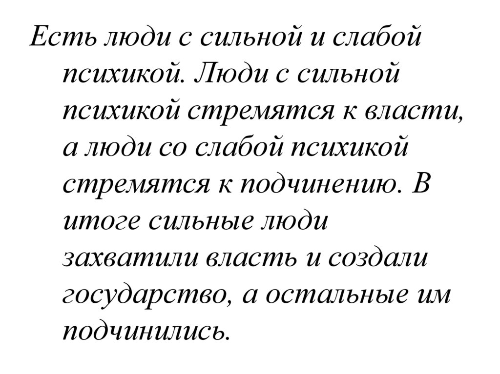 Есть люди с сильной и слабойпсихикой. Люди с сильной
