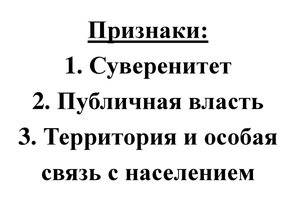 Признаки:1. Суверенитет