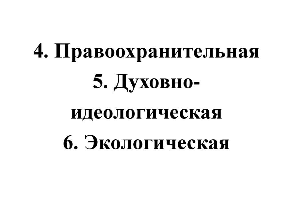 4. Правоохранительная5. Духовноидеологическая
