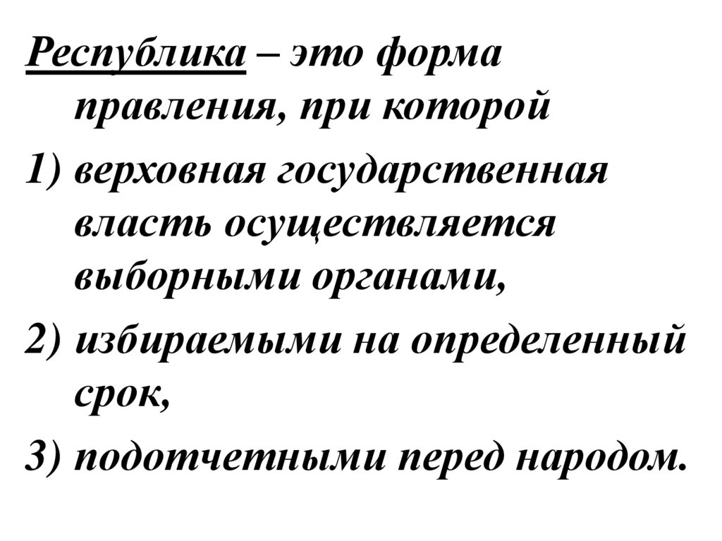 Республика – это формаправления, при которой