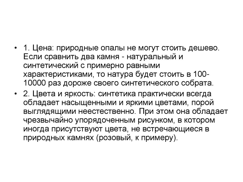 • 1. Цена: природные опалы не могут стоить дешево.Если сравнить два камня - натуральный и