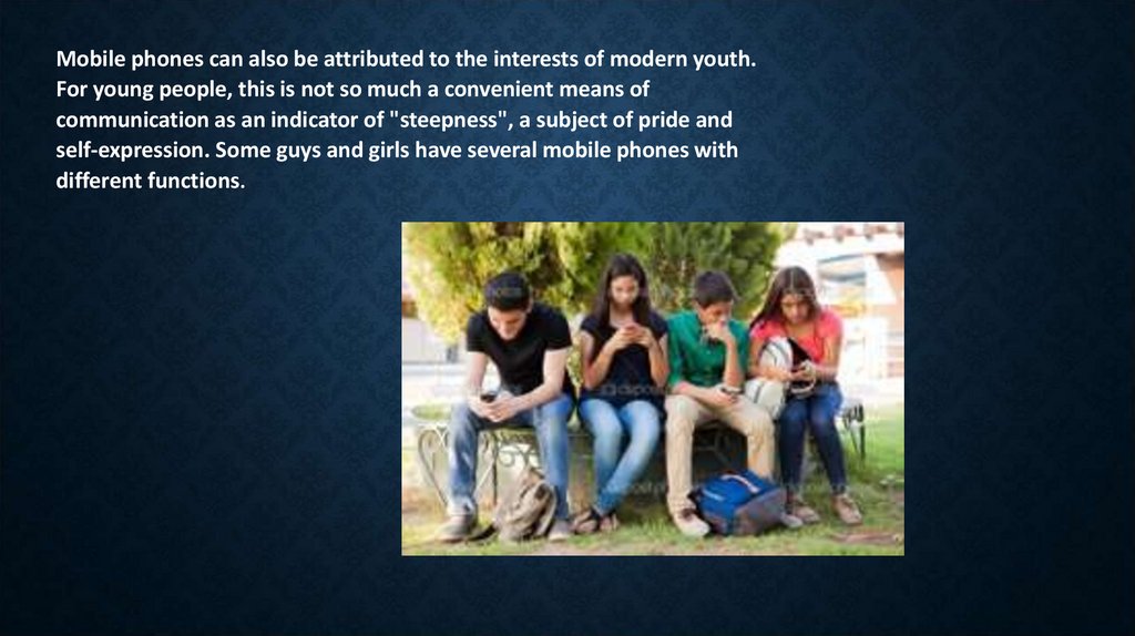 Mobile phones can also be attributed to the interests of modern youth.For young people, this is not so much a convenient means of
