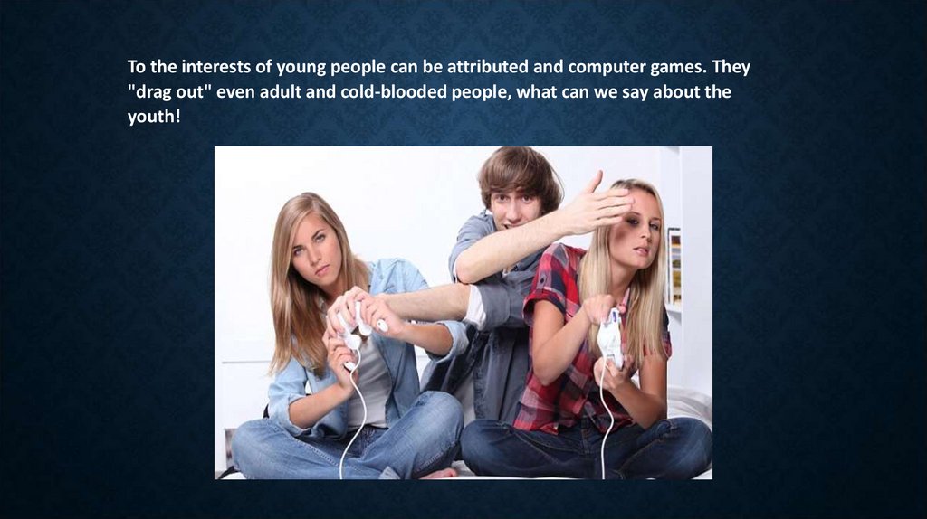 To the interests of young people can be attributed and computer games. They"drag out" even adult and cold-blooded people, what can we say about the
