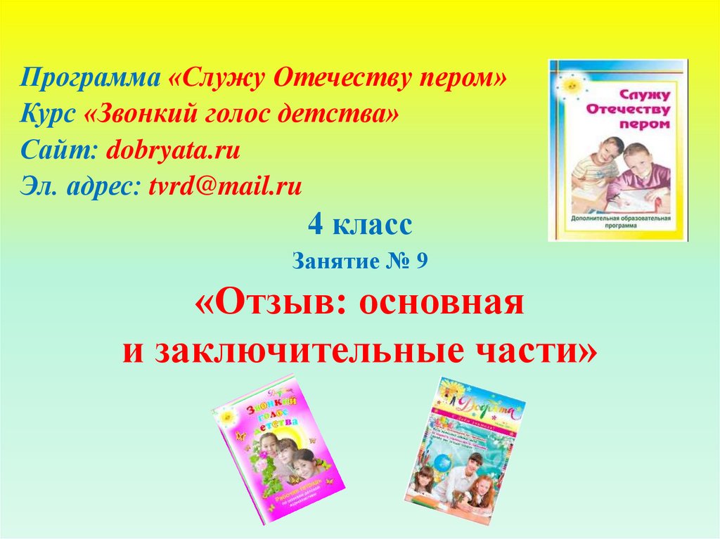 Тема занятия:«Отзыв: основная и заключительная части»