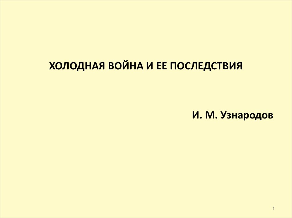 ХОЛОДНАЯ ВОЙНА И ЕЕ ПОСЛЕДСТВИЯИ. М. Узнародов