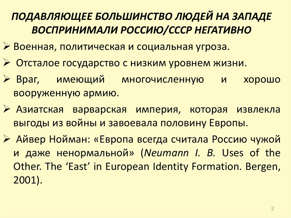 ПОДАВЛЯЮЩЕЕ БОЛЬШИНСТВО ЛЮДЕЙ НА ЗАПАДЕВОСПРИНИМАЛИ РОССИЮ/СССР НЕГАТИВНО