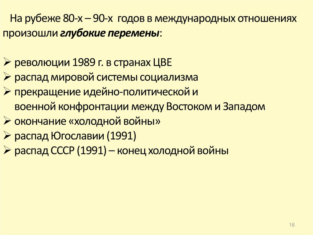 На рубеже 80-х – 90-х годов в международных отношенияхпроизошли глубокие перемены: