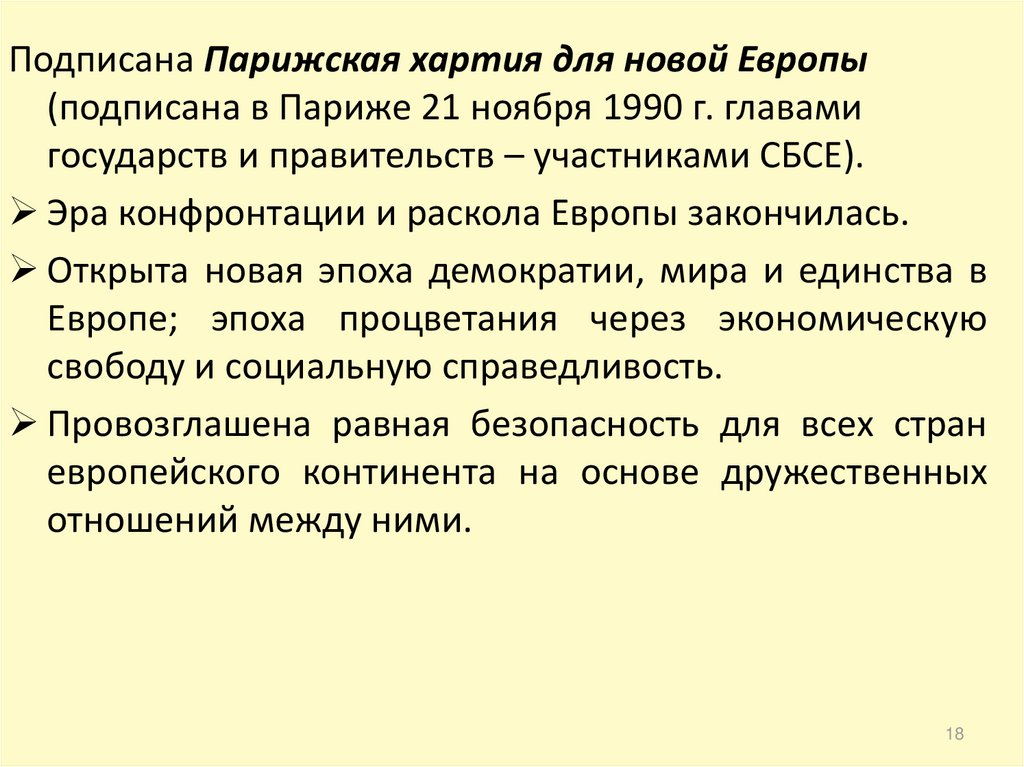 Подписана Парижская хартия для новой Европы(подписана в Париже 21 ноября 1990 г. главами