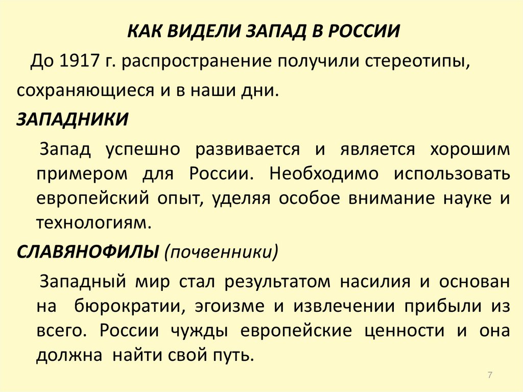 КАК ВИДЕЛИ ЗАПАД В РОССИИДо 1917 г. распространение получили стереотипы,