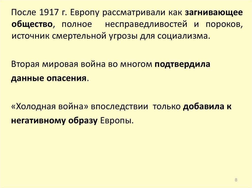 После 1917 г. Европу рассматривали как загнивающееобщество, полное несправедливостей и пороков,