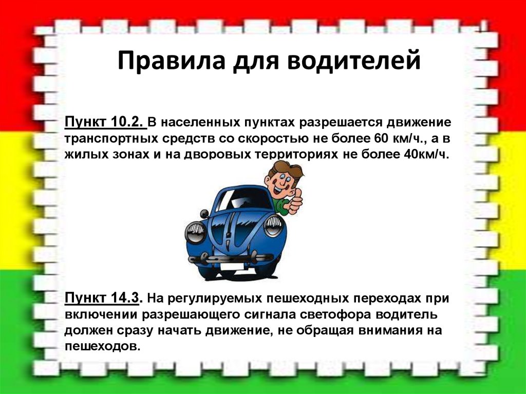 Правила для водителейПункт 10.2. В населенных пунктах разрешается движение