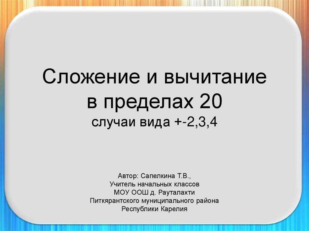 Сложение и вычитание в пределах 20 случаи вида +-2,3,4