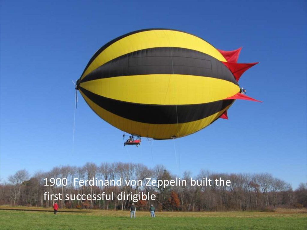 1900 Ferdinand von Zeppelin built thefirst successful dirigible