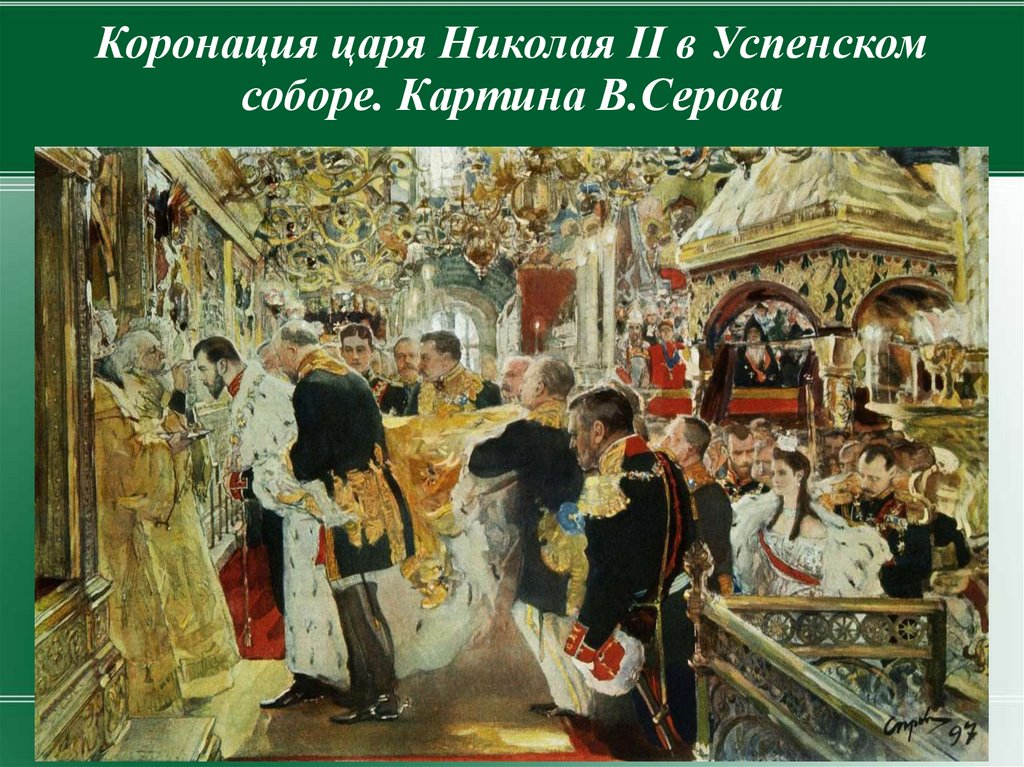 Коронация царя Николая II в Успенскомсоборе. Картина В.Серова