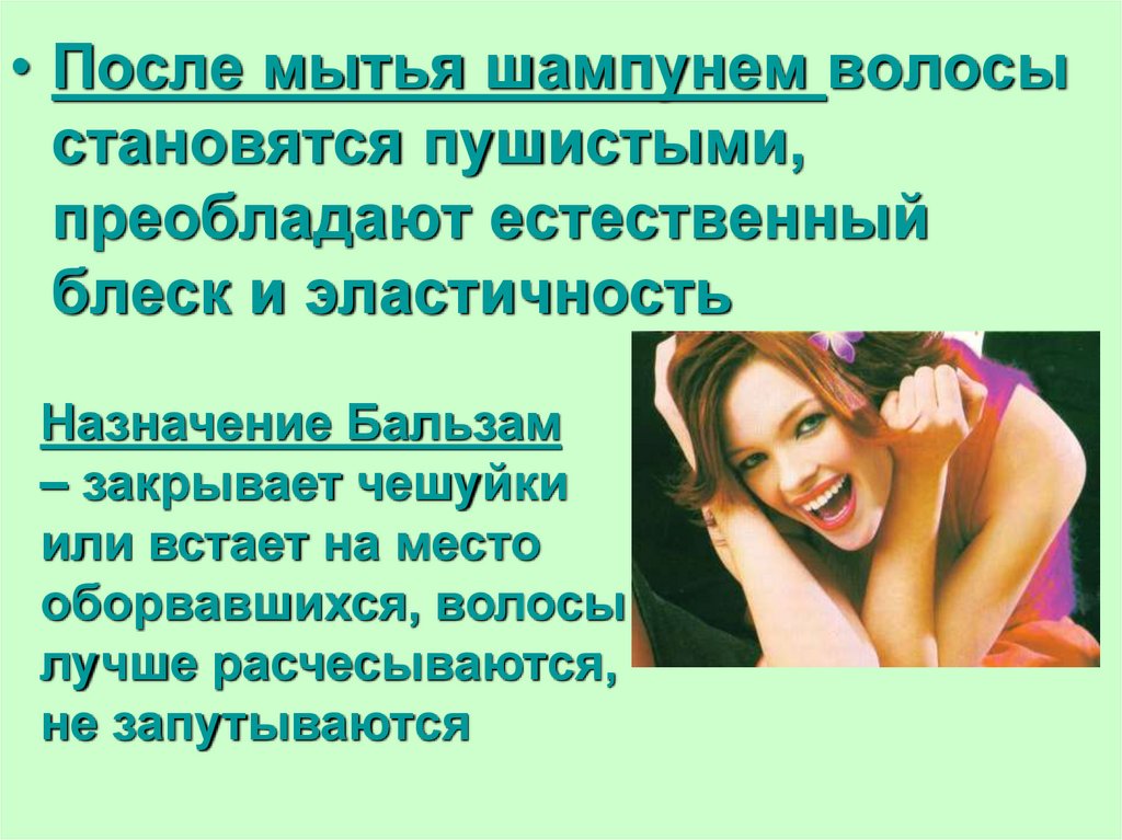 1. Для каждого типа волос существуют спец.шампуни (для разных типов волос):
