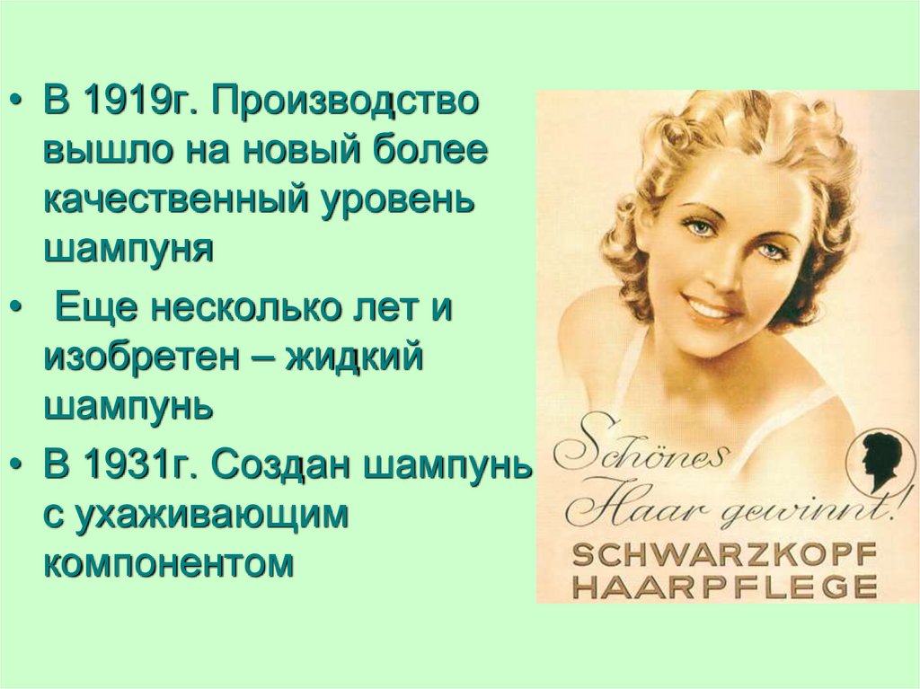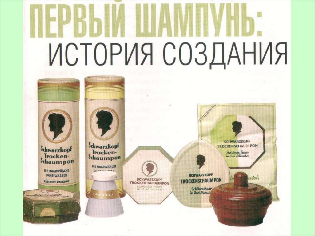 9. В 2003г. исполнилось 100лет как изобретен шампунь в Германии. Придумал химик -Ханс Шварцкопф