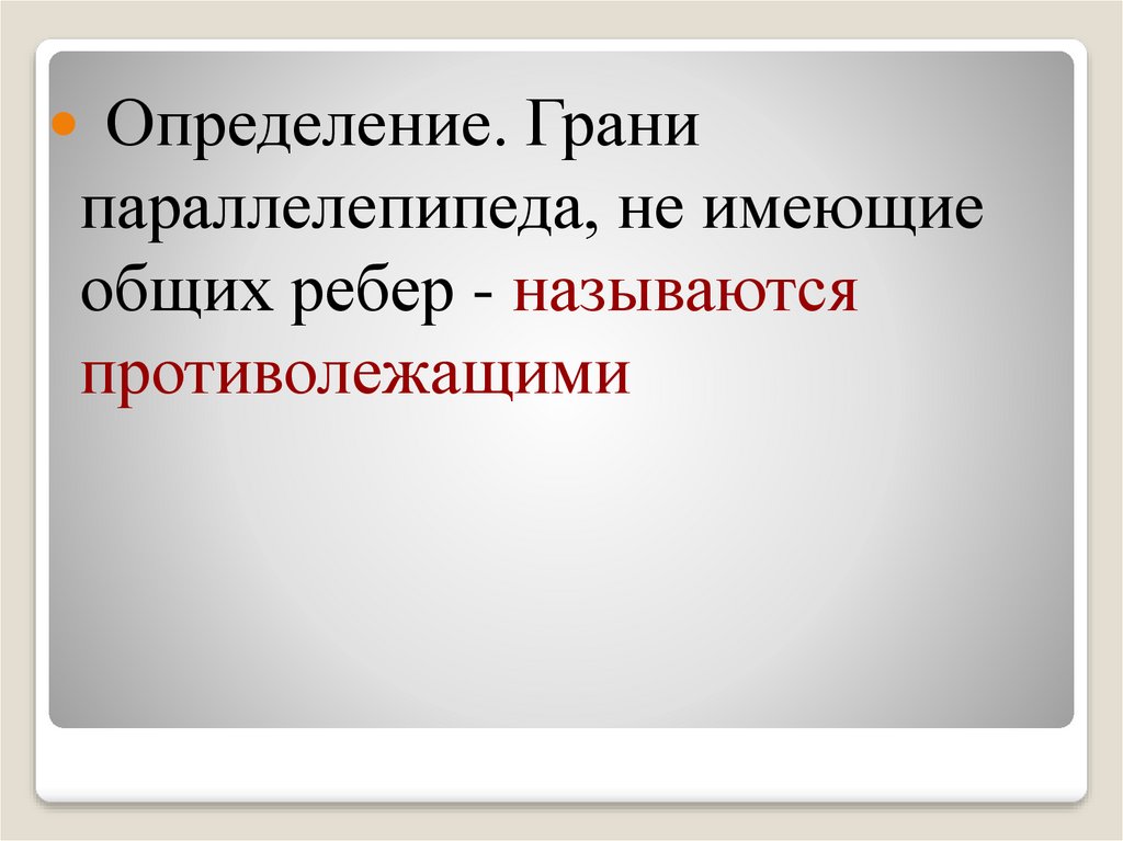 Определение. Гранипараллелепипеда, не имеющие