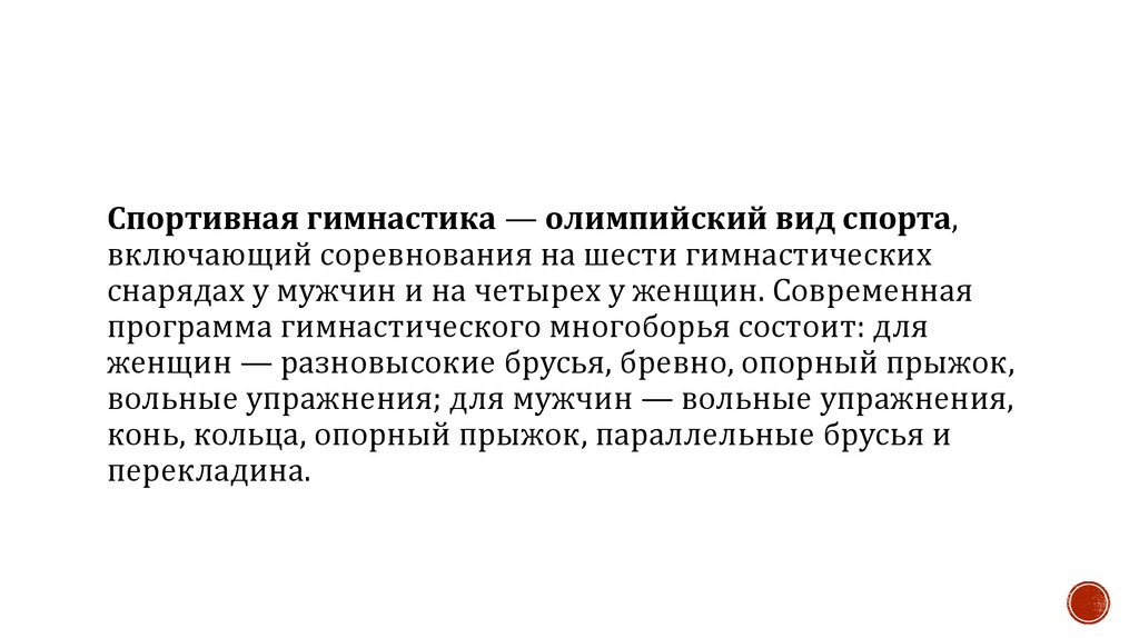 Спортивная гимнастика — олимпийский вид спорта,включающий соревнования на шести гимнастических