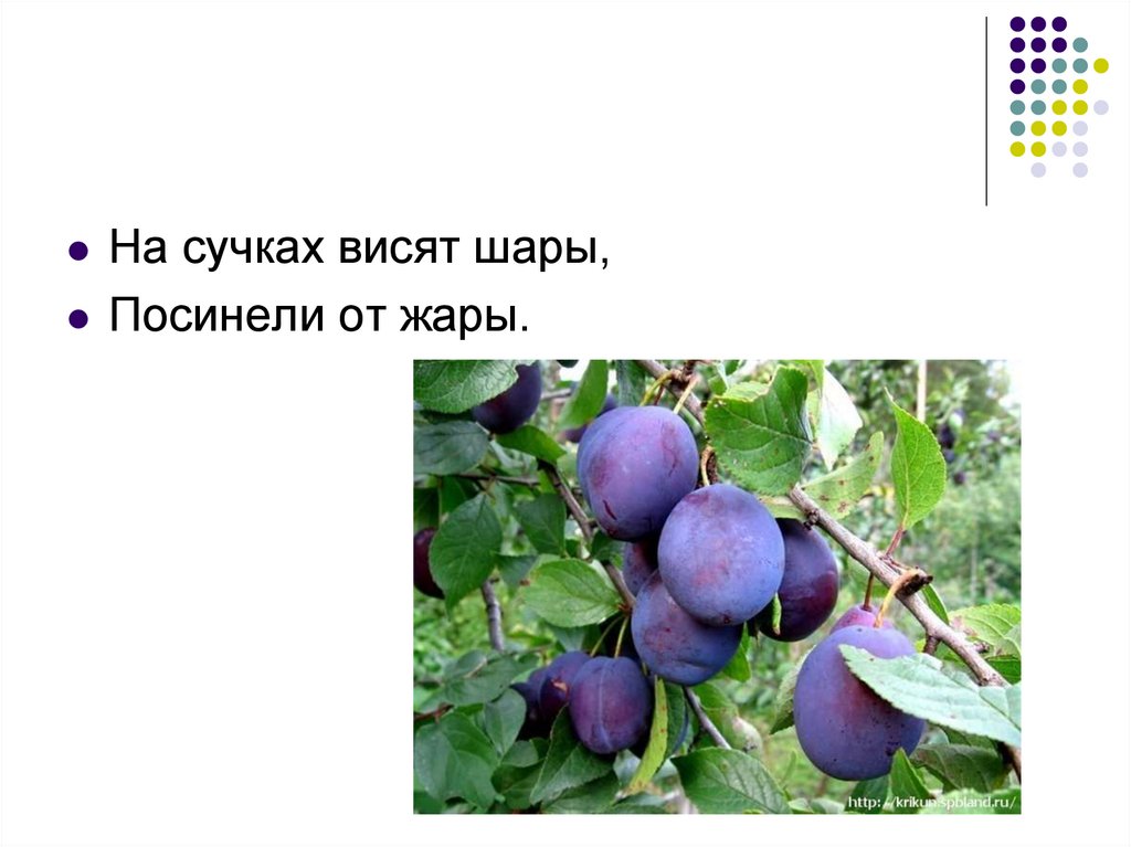 На сучках висят шары,Посинели от жары.