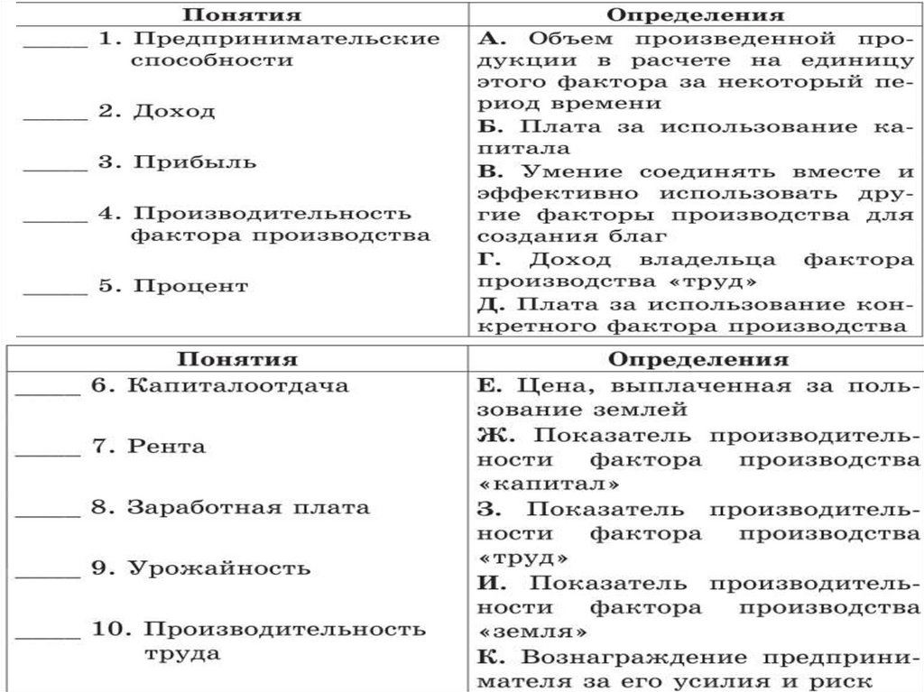 4. Факторы производства и факторные доходы. Производительность факторов производства